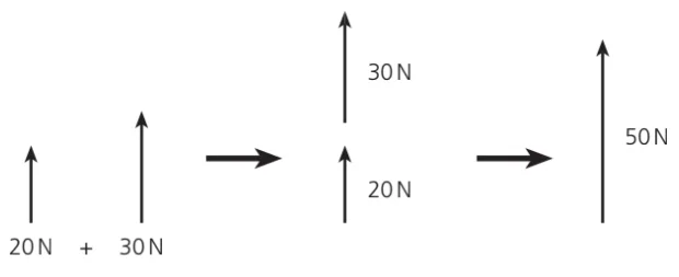 20 N + 30 N in the same direction gives a resultant of 50 N