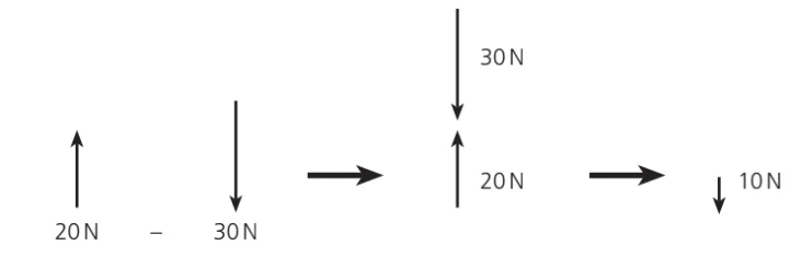 30 N − 20 N gives a resultant of 10 N in the direction of the 30 N force