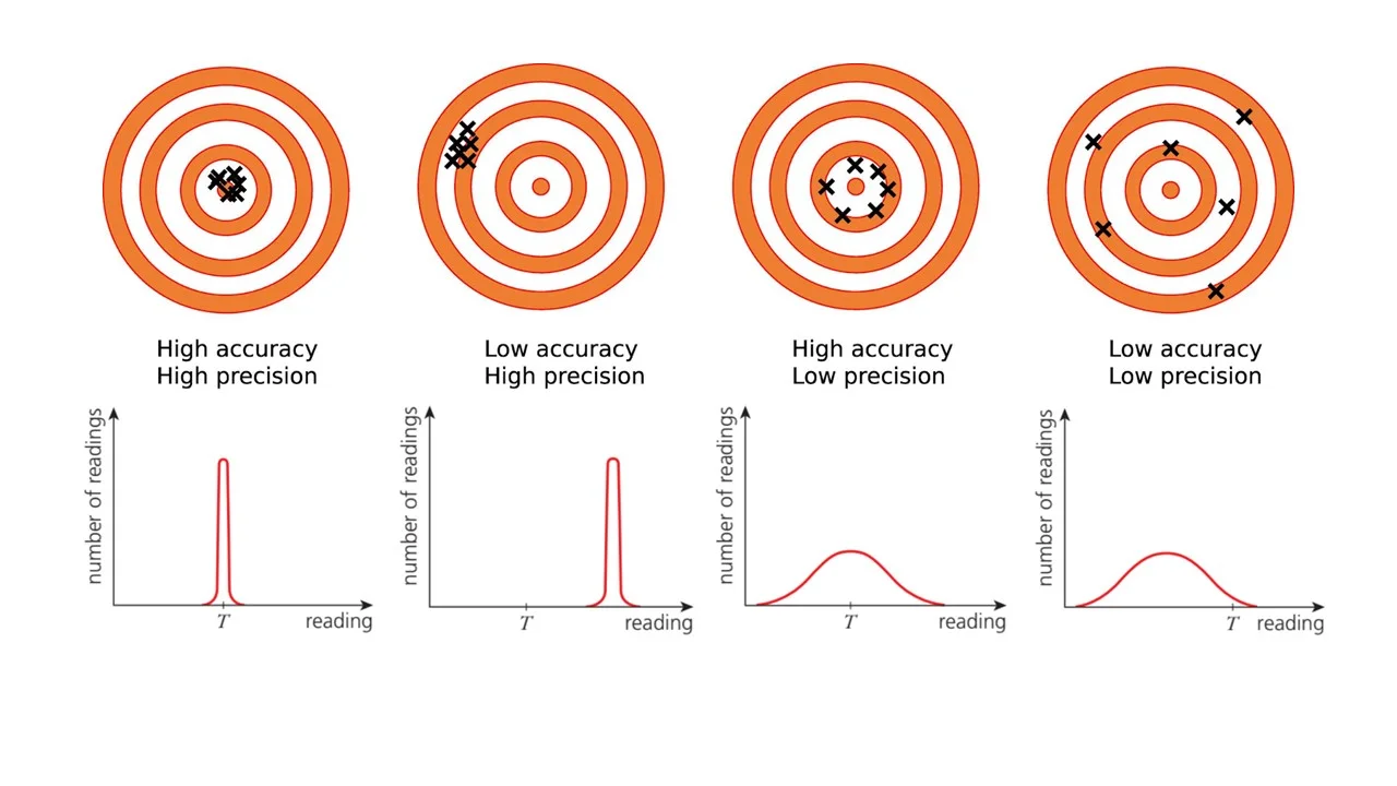 a set of measurements can be precise but not accurate, or accurate but not precise.